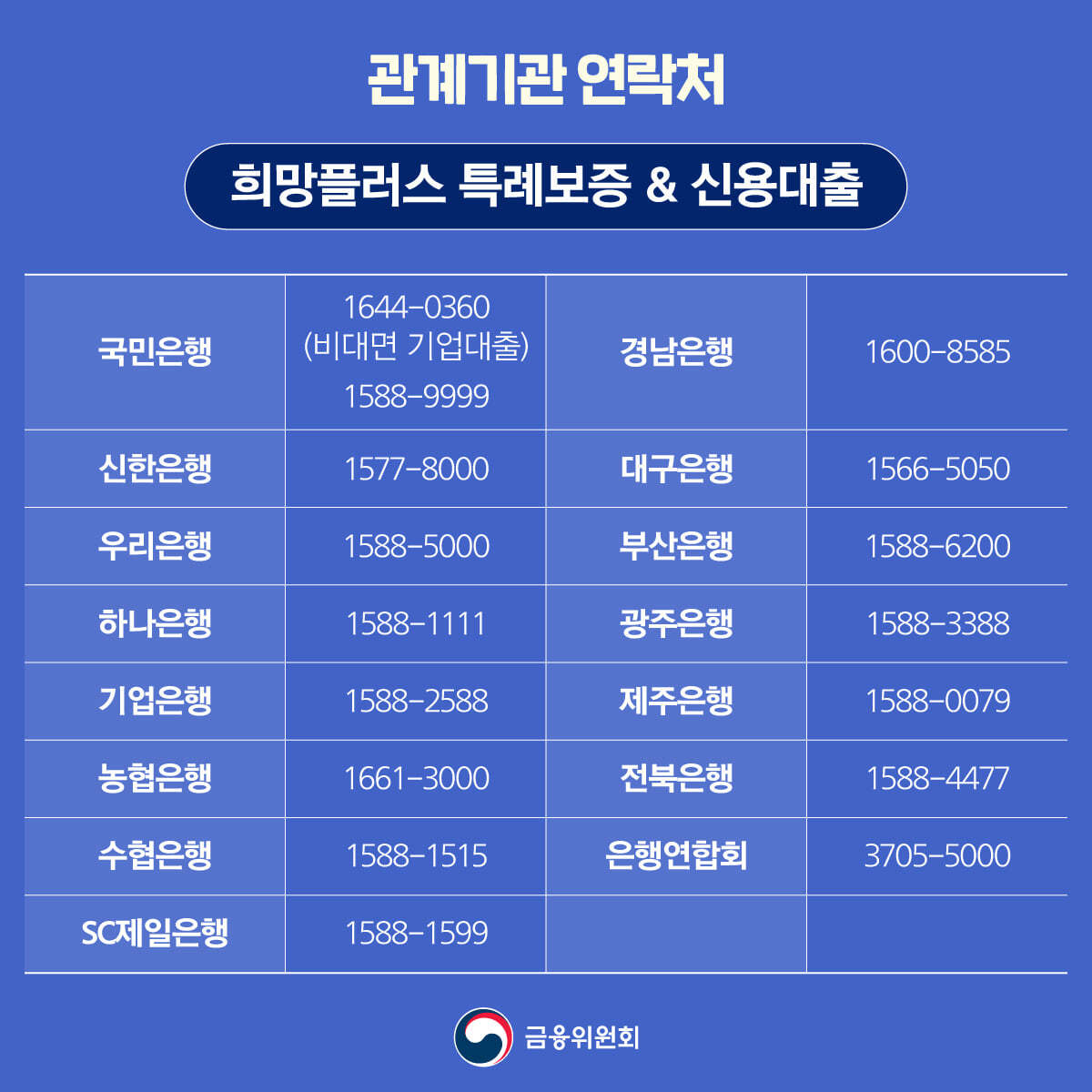 중소벤처기업부와 금융위원회가 소기업·소상공인의 피해 회복을 지원하기 위해 <희망대출플러스> 지원 신청을 받습니다. 신용도에 따라 1%대의 초저금리로 대출을 받을 수 있을 전망인데요. 소상공인 1·2차 금융 지원 프로그램 등 타 정책 자금을 받은 경우라고 하더라도 중복 신청이 가능하다고 하니 금융 지원이 필요하신 분은 놓치지 말고 신청해 보시기 바랍니다.