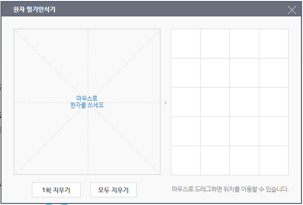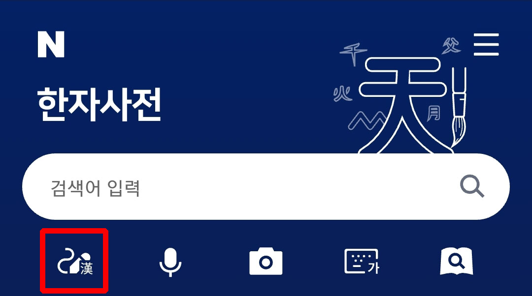 네이버 한자사전은 필기인식기를 사용하여 한자를 손쉽게 입력할 수 있습니다. 전혀 모르는 한자를 직접 그려 보세요.
