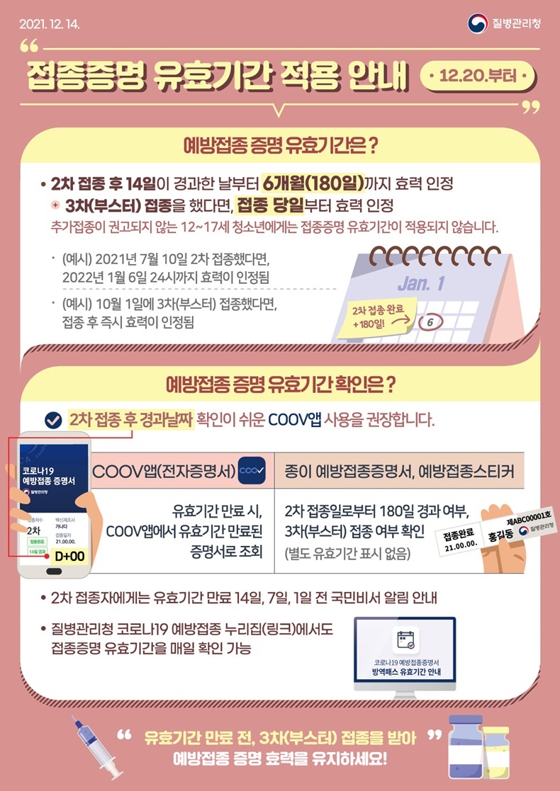 + 3차(부스터) 접종을 했다면, 접종 당일부터 효력 인정